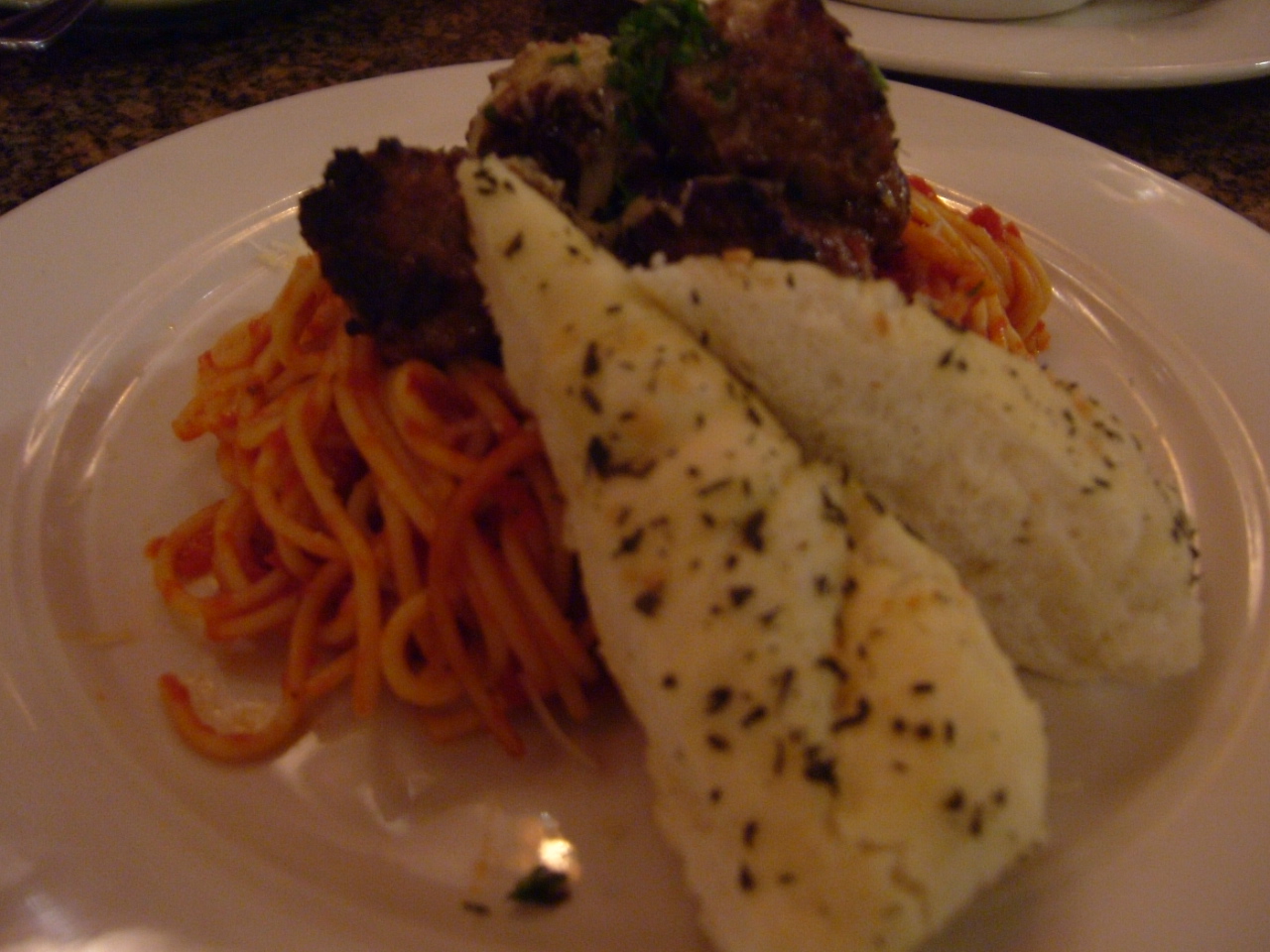 パスタはトマトソースですが肉団子は神戸beefって書いてあった。